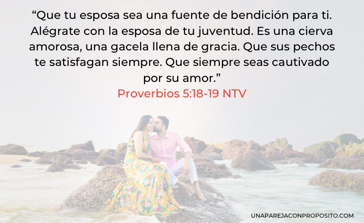 «Que tu esposa sea una fuente de bendición para ti. Alégrate con la esposa de tu juventud. Es una cierva amorosa, una gacela llena de gracia. Que sus pechos te satisfagan siempre. Que siempre seas cautivado por su amor.» Proverbios 5:18-19
