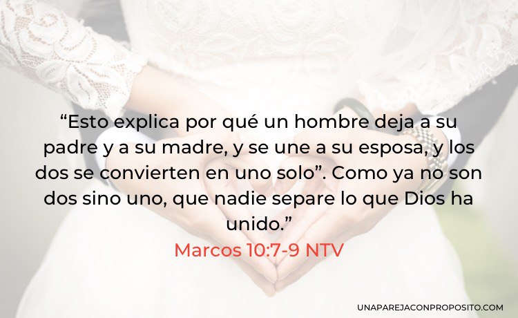 “Esto explica por qué un hombre deja a su padre y a su madre, y se une a su esposa, y los dos se convierten en uno solo”. Como ya no son dos sino uno, que nadie separe lo que Dios ha unido.”