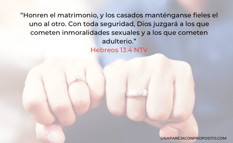 “Honren el matrimonio, y los casados manténganse fieles el uno al otro. Con toda seguridad, Dios juzgará a los que cometen inmoralidades sexuales y a los que cometen adulterio.”