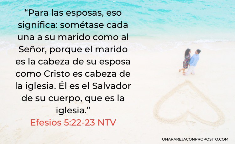 «Para las esposas, eso significa: sométase cada una a su marido como al Señor, porque el marido es la cabeza de su esposa como Cristo es cabeza de la iglesia. El es el Salvador de su cuerpo, que es la iglesia.»